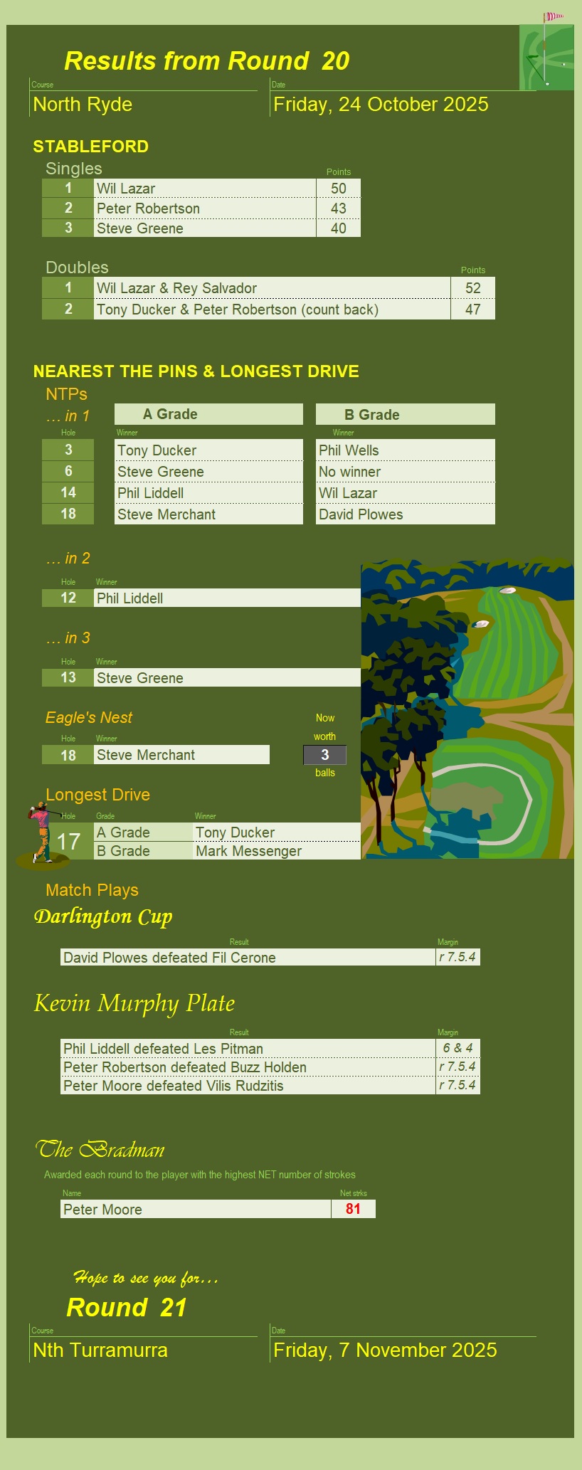 matchplay, won by Phil 6&4. It was always going to be tough for Les