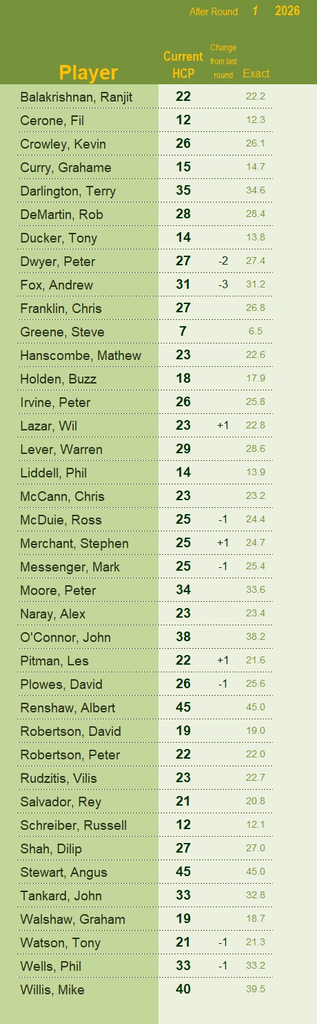 Mr Handicapper advises there were a couple of scorecard errors, same