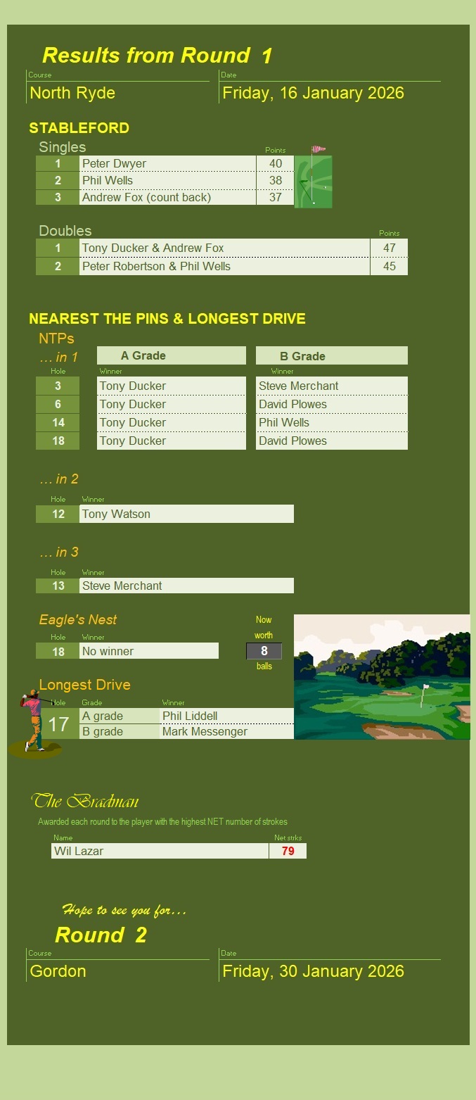 on 47 points. Second were Phil Wells and Peter Robinson with 45.